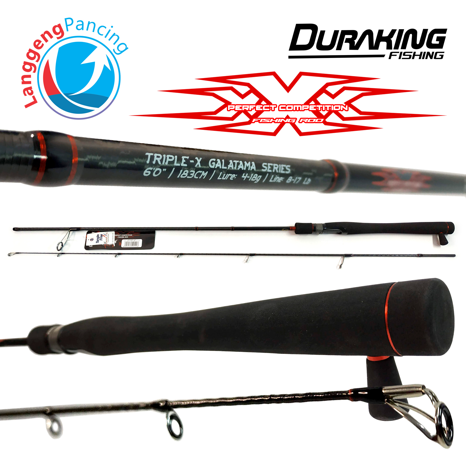 - Material: Premium high carbon dengan teknologi X-Wrap yang meningkatkan ketahanan terhadap tekanan saat menarik ikan besar.