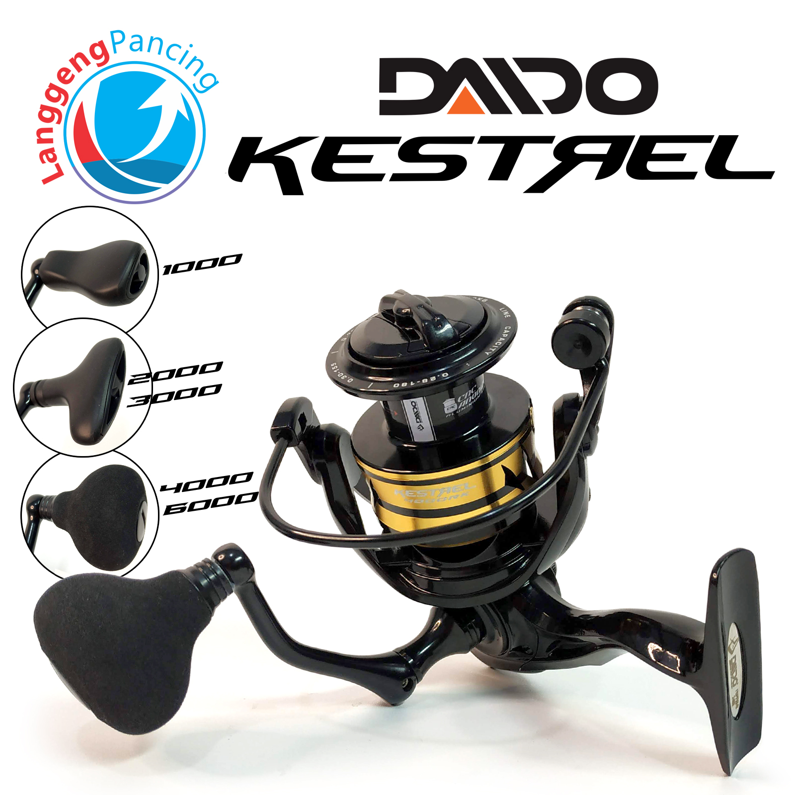 - Spul & Handle: Spul aluminium beranoda CNC dan power handle aluminium yang kuat. Ukuran 1000-3000 memiliki knop T, sedangkan 4000 & 6000 memiliki knop bulat EVA.